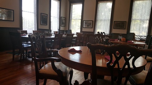 The building itself is beautiful. It was built in the late 1800s and has been everything from an inn to a stagecoach to a house/residence to a boys school to a old folks home. It has a great history, and one I would like to learn more about. It had fallen into disrepair when it was bought and restored. My friend owns the restaurant half, and then there…